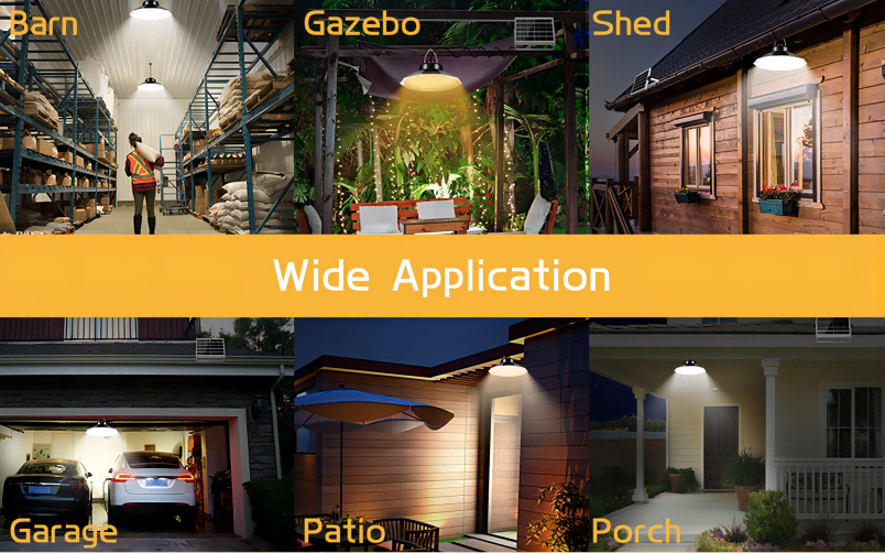 4. Széleskörű alkalmazás Ez a napelemes fészer 3 színhőmérséklettel rendelkezik: 4000K-6000K (meleg, fehér, kevert színek), 3 az 1-ben, amely megfelel a különböző környezetek és forgatókönyvek igényeinek,