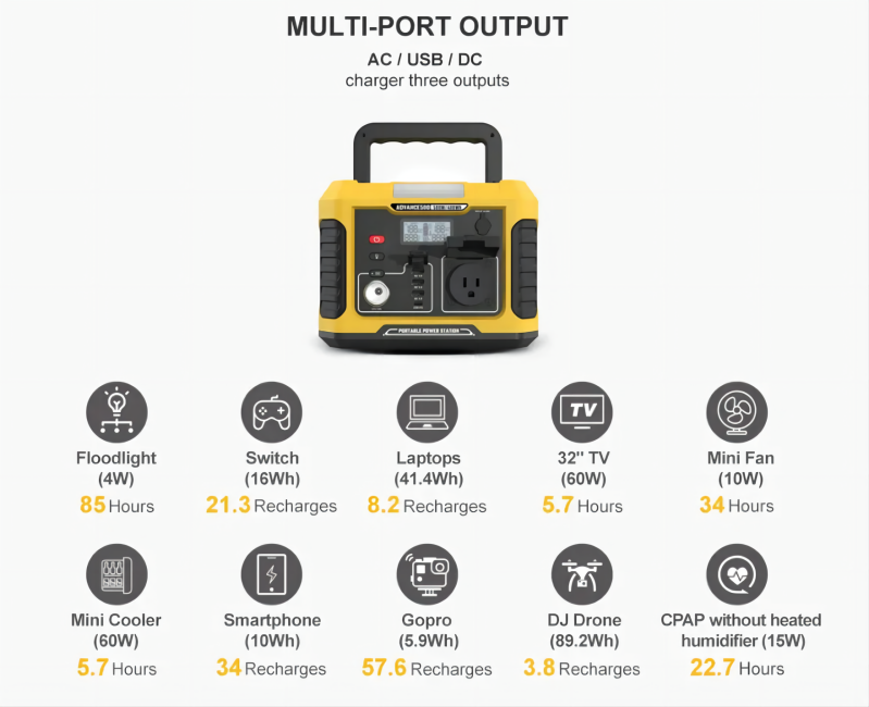 Lítium akkumulátor Nagy kapacitású tároló500 W-os hordozható erőmű