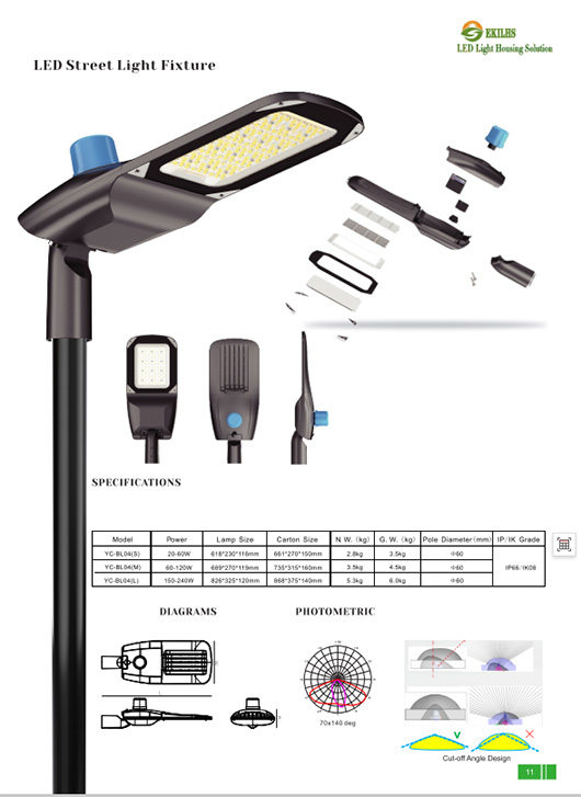 | EK-BL04(S) | 618*230*116 | 20w-80w (lámpaoszlop 60mm) | Alumínium ház, edzett üveg, gumigyűrű, csavarok |