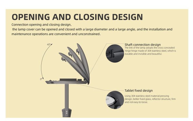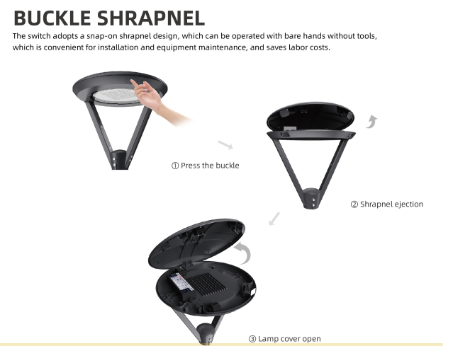 A lámpa felületét kültéri professzionális műanyag porral permetezik, amely erős korrózióállósággal és tartóssággal rendelkezik,