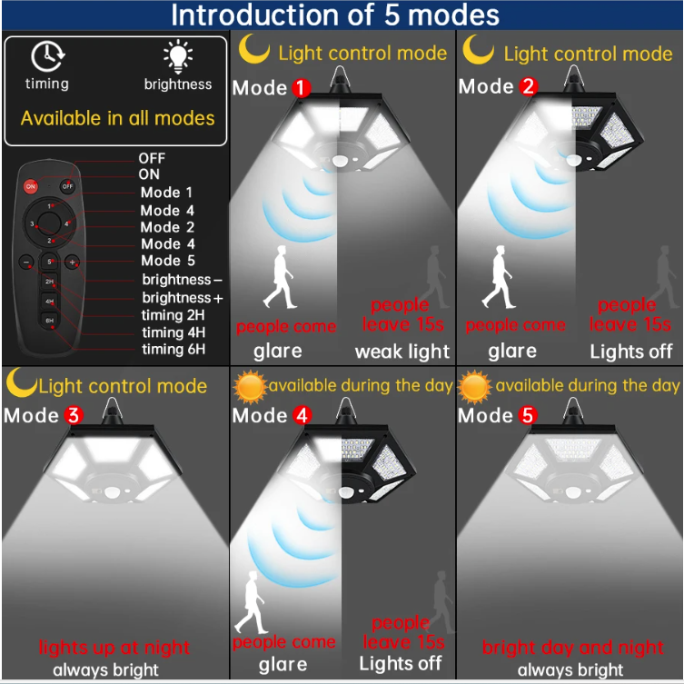 2. 3 éjszakai üzemmód és időzítő Ez a napelemes beltéri lámpa nagy érzékenységű mozgásérzékelővel rendelkezik