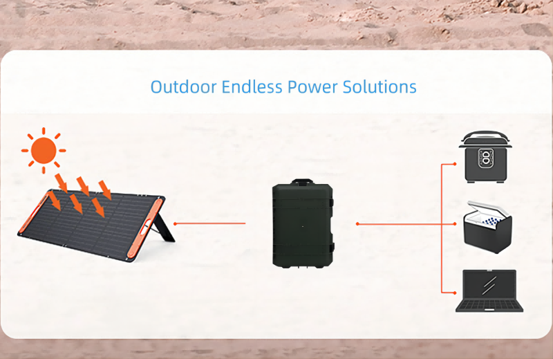 A napelemes összecsukható panel jellemzően nagy hatékonyságú napelemekből, beépített akkumulátorból, töltésvezérlőből és kimeneti interfészből áll. Napfény hatására a napelemek az energiát elektromos energiává alakítják, és a beépített akkumulátorban tárolják. A töltésvezérlő segít szabályozni a töltési folyamatot, és biztosítja, hogy az eszközök stabil és hatékony töltést kapjanak.